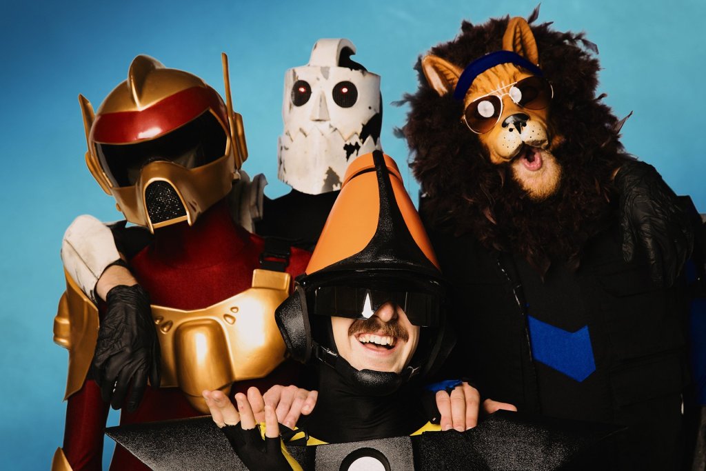 TWRP is a Canadian electro-funk-disco-pop—they really defy genre—band made up of four best friends: Doctor Sung, Commander Meouch, Lord Phobos, and Havve Hogan. Do those names sound weird? Well, they look like this—