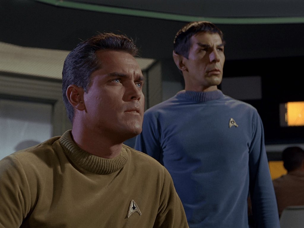 - The way they decided to use the footage from “The Cage” is quite smart. Whether they needed another episode and didn’t have the budget for another full episode, or just didn’t want the footage from “The Cage” to go to waste, I think these episodes are quite good. My personal rating would be higher if I hadn’t already watched the original pilot, but I do like these episodes better than I like “The Cage” on its own, primarily for the seemingly out-of-character behaviour from Spock. It’s always nice when we get to see another layer of his characterization.