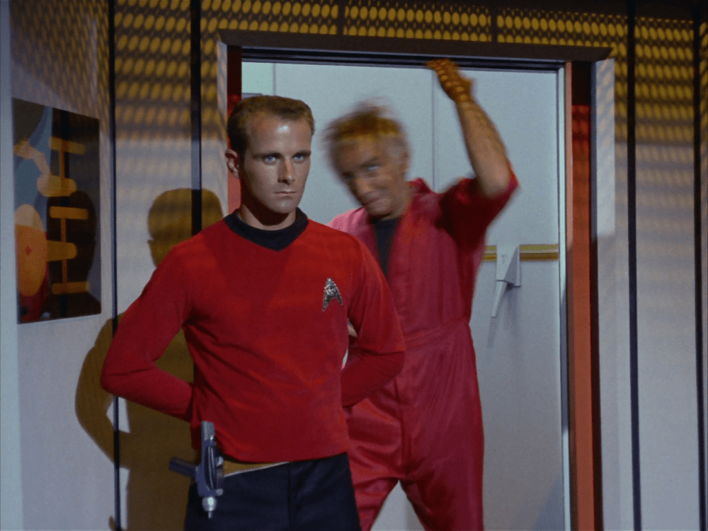 - Of course there are more serious moments in this episode, like evil Kirk’s assault of Janice Rand. She fought back and, honestly, for the mid-60s I think they handled this situation pretty well. It would have, of course, been viewed in a different light back then, but Janice is never blamed or made to feel as less-than for what happened. Nor is she punished for fighting back, harming who she thought was her captain. I mean, Kirk yells a bit, but I think anyone would yell if there was someone going around pretending to be you and doing horrible things. My biggest issue is Janice saying she wouldn’t have mentioned the incident if someone else hadn’t seen “Kirk” leaving her room, but again, different times. Handling of situations like this is always a complicated thing, and thoughts about them can get complicated when you’re watching stuff from many years ago.