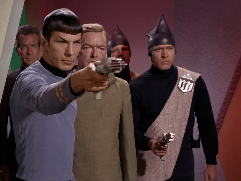 - As with many episodes that feature Spock in a main story role, this episode is primarily about logic vs. emotion, rational thought and action vs. emotional thought and action. It’s always an interesting dilemma as it’s something pretty much everyone deals with at some point in their lives to some degree. But I must say, for Starfleet officers, the two men Spock takes with him to scare those indigenous to the planet away, are deeply disregardful of life, as Spock points out, and that is not a logic vs. emotion thing. Yes, they are emotional over the loss of their comrade but to want to slaughter indiscriminately seems much more base than Starfleet strives for. Kirk exemplifies this in “The Corbomite Maneuver” when they disable the ship and then board it to help any injured. (I’m chalking the behaviour of the crewmen in this episode to the fact that this is still early in Star Trek’s life and it’s likely they hadn’t really figured out the tone and such they were going for, or at least hadn’t settled completely on one. Starfleet in Treks set earlier in the timeline is always a bit more militaristic.) There is also an element of Spock learning that logic is not always the answer. And the whole episode is worth Kirk and Bones teasing Spock at the end.