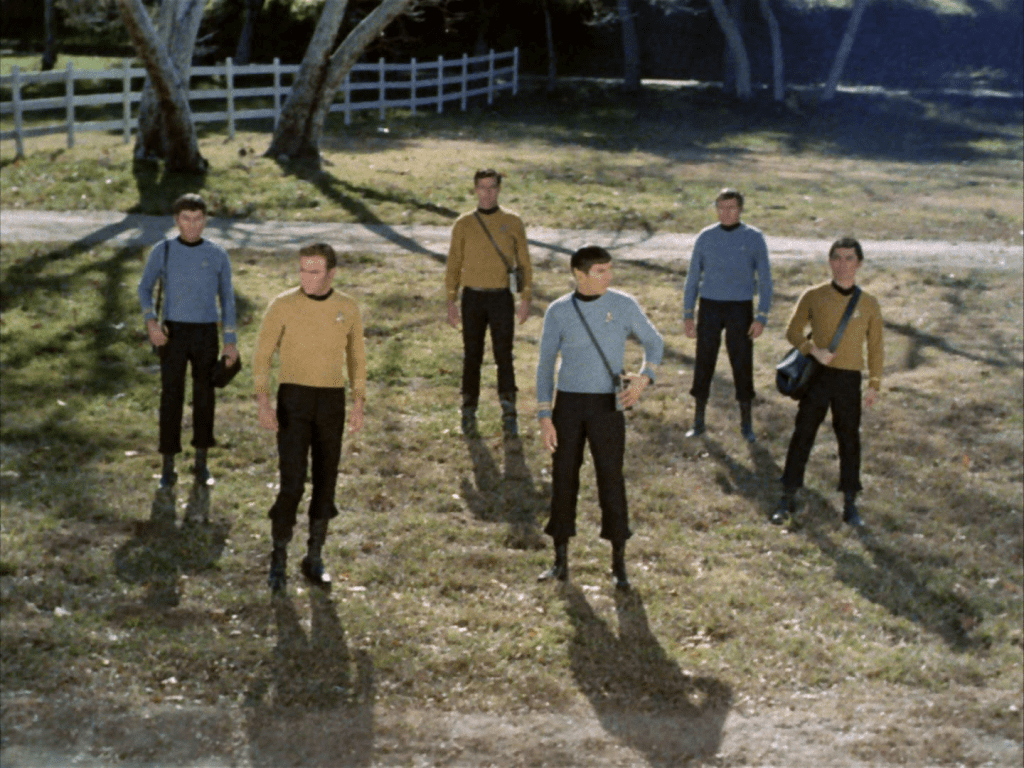 - There’s a lot about this episode that’s confusing, which is why I’m pretty sure it was the first episode filmed after “The Cage.” I don’t know why it comes third in the episodes on Paramount+ and Netflix, but I assume it has something to do with when it aired or something. Anyway, Scotty is in this episode but not in the first two; Bones isn’t in this episode but is in the first two; Janice isn’t here; Sulu’s here but he’s wearing blue; Spock’s wearing yellow; I already mentioned the uniforms but there is no actual red shirt in this episode—it’s this ugly beige/orange colour; Uhura’s not here; we deal with ESP and “espers” which was, I believe, a new concept in the 1960s and something that was being heavily studied, which is weird only in that it was and is a very real-world thing being dealt with directly (rather than with a sci-fi analog) which doesn’t happen often in Star Trek. There are also some similarities between this episode and the plot of Star Trek: The Motion Picture which is weird but not that weird.