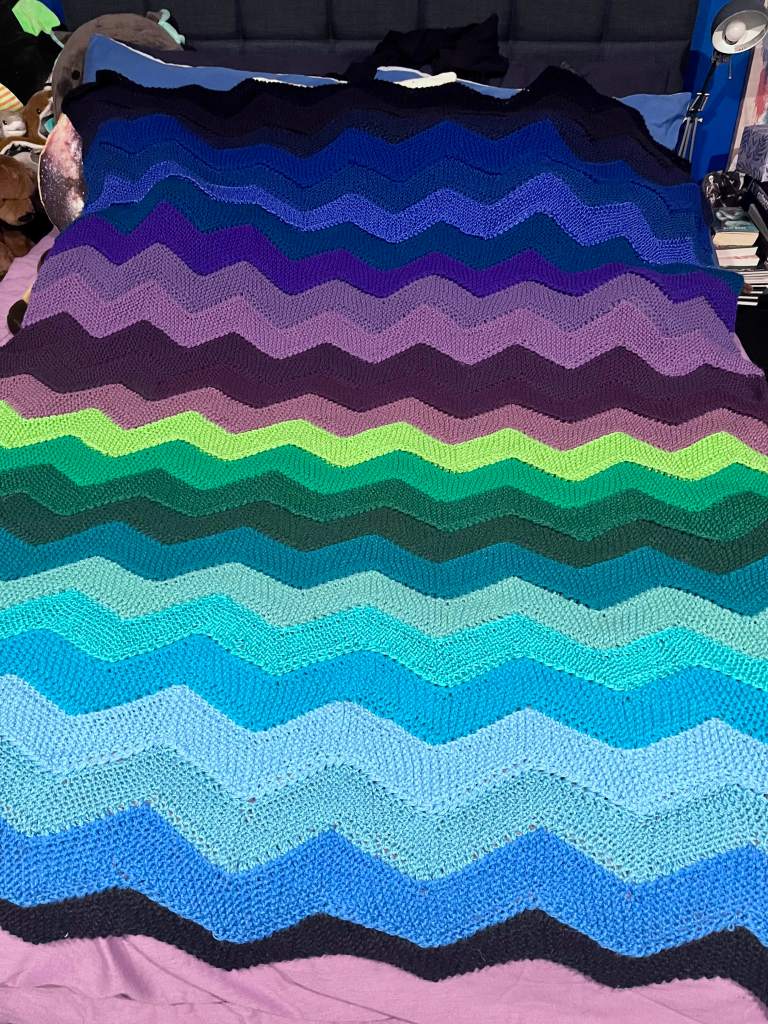 So since I started knitting and crocheting in 2015/2016, I’ve mostly made things as gifts, commissions, or to sell. Even though there are piles of yarn and so many patterns I’ve purchased for projects for myself. I’ve made so, so few of them. For example, I started this blanket in 2020 and just finished it. Five years later. So this year I’m going to try to make more stuff for myself. I will still make stuff for others and to sell but on a smaller scale.
