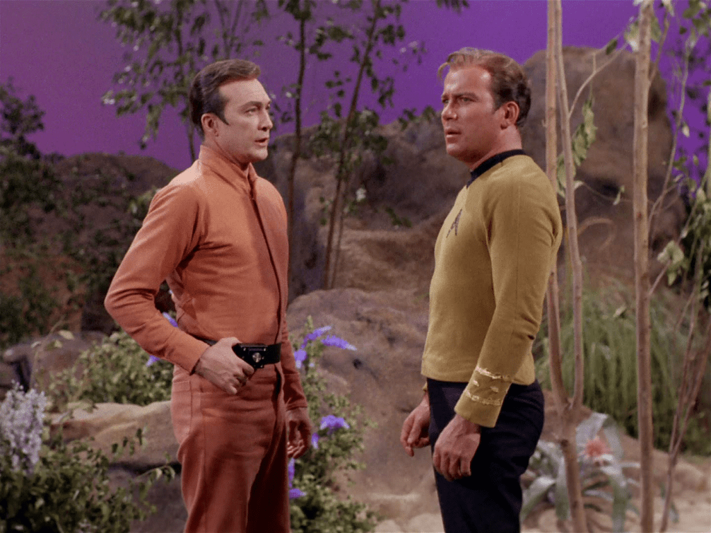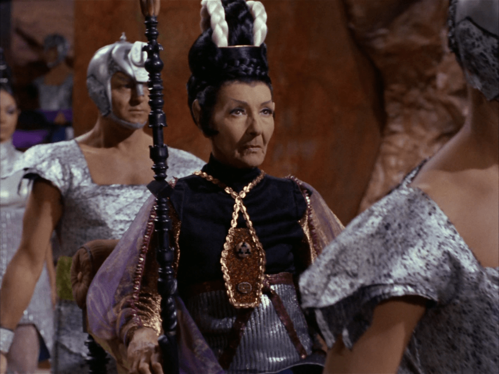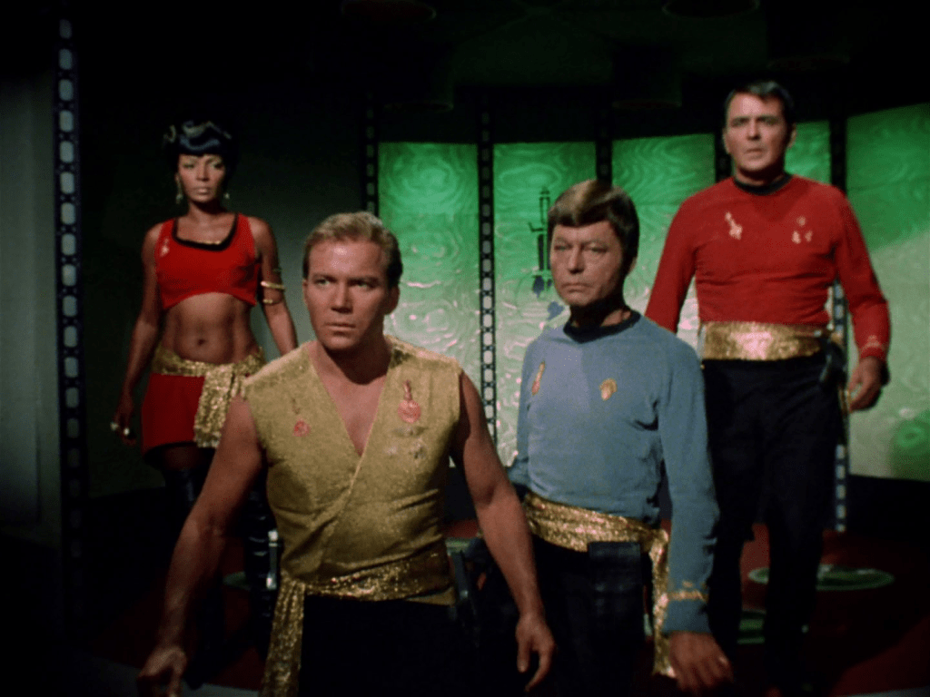 - I’m not a big fan of the power-hungry-witch-woman trope used in this episode. She literally drugs her husband and Kirk and is pushing the peaceful people towards violence, steals Kirk’s phaser, and betrays her husband’s people. And I don’t want to be mean, but the actress is really over-the-top and kind of grating to me. I do not like this episode really. It’s kind of a mess. Though it does show that human (and Klingon) influence usually leads to violence. AND THEY JUST LEAVE AT THE END? (I get it and they probably report to Starfleet but ???)