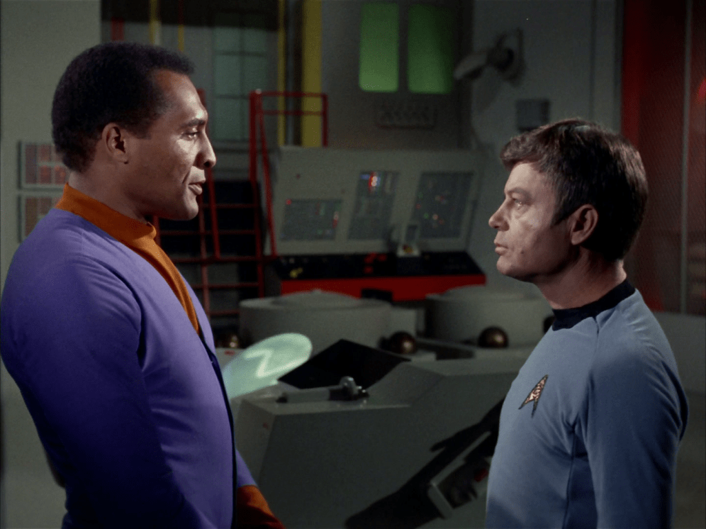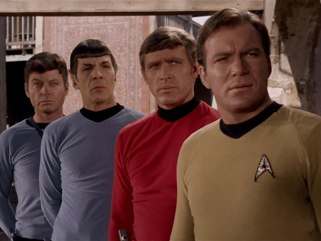 - Ugh, this is another alternate history planet. I don’t like these very much because they don’t make a lot of sense. In a whole galaxy, we keep stumbling upon planets with the same conflicts as Earth? Like, I get that limitations in costuming and sets and effects and everything that mean some limitations in stories that can be told, and that there is some catering to the audience with stories like this one, which is very American, but like… I don’t like it? I’m glad these become less common episodes as the franchise continues because for all the interesting choices made they’re just kind of boring. Kirk’s speech about being able to tell good and evil by looks and about prejudice, etc. are important and good (especially in the 1960s) but it just feels a bit heavy-handed now and these are really not my favourite episodes.